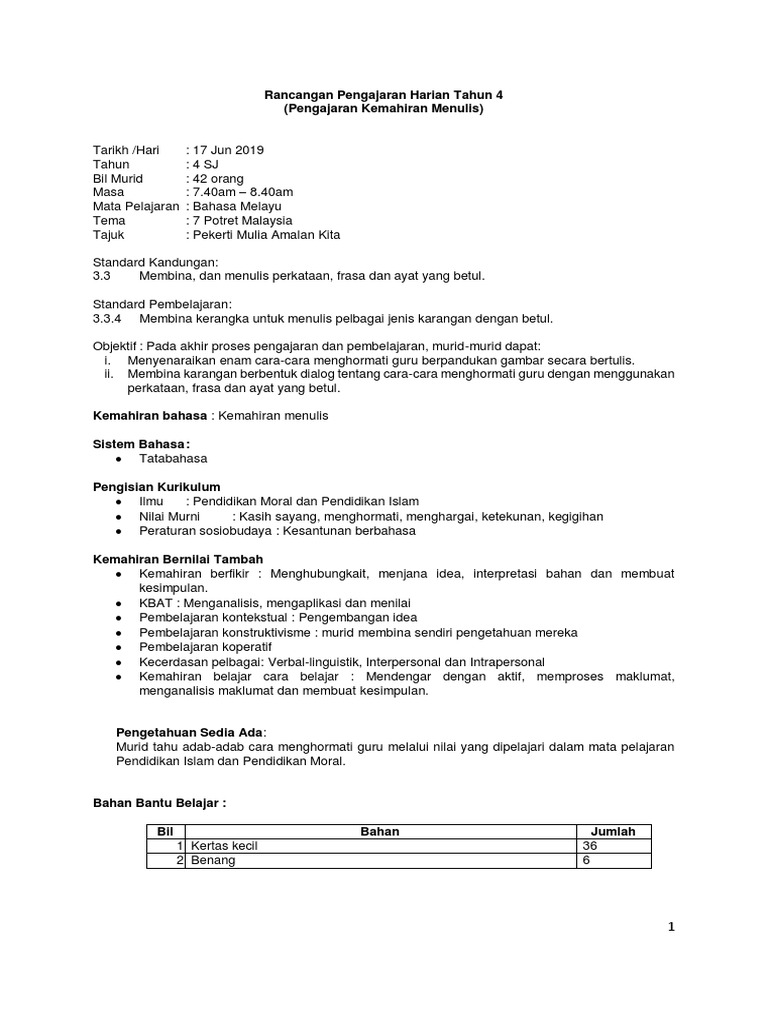 Rancangan Pengajaran Harian Bahasa Malaysia Tahun 2 Pdf