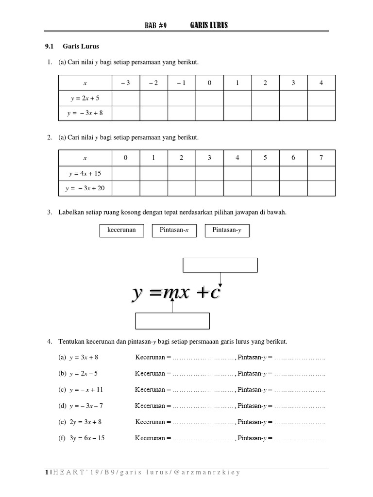 Gantikan 53 dan 2 5 ke dalam y mx c. 1st - 10th grade. Bab 1 Matematik Tingkatan 3 2019.