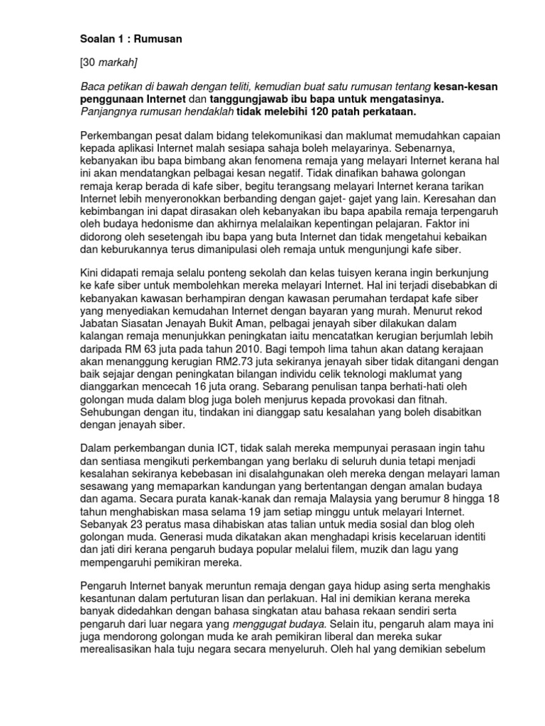 Soalan rumusan SPM 2018 Baca petikan di bawah dengan teliti kemudian buat satu rumusan tentang persediaan-persediaan graduan sebelum memasuki alam pekerjaan dan usaha-usaha yang perlu dilakukan untuk mengurangkan masalah pengangguran. Calon wajib menduduki semua kertas peperiksaan bagi mata pelajaran yang didaftar. PENULISAN RUMUSAN FORMAT BARU SPM.