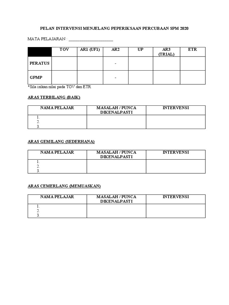 Pelan Intervensi Menjelang Peperiksaan Percubaan Spm 2020 Pdf