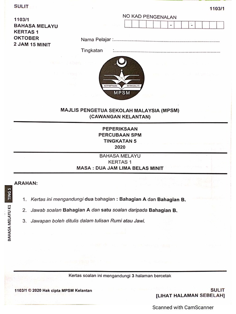 Percubaan SPM Kelantan 2020. Koleksi Soalan Percubaan SPM 2021 Trial Papers.