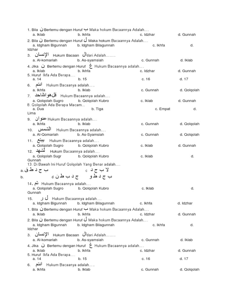 File PDF latihan ada di bawah post. Soal ulangan tajwid januari 2014 contoh soal hukum tajwid minimal 10 brainlycoid. SOALAN HUKUM RA SOALAN QALQALAH.