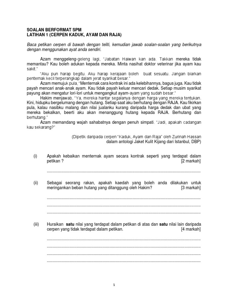 Soalan Novel Tingkatan 3. Click to expand document information. Soalan Bahasa Melayu Tahun 1 2019.