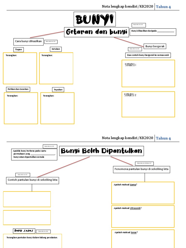 SAINS TAHUN 4 Tajuk. Nota Sains Tahun 4 Bunyi. Untuk mendapatkan nota bolehlah download dari sini.