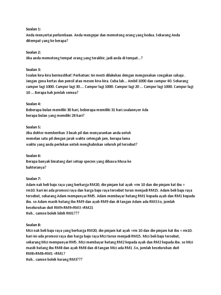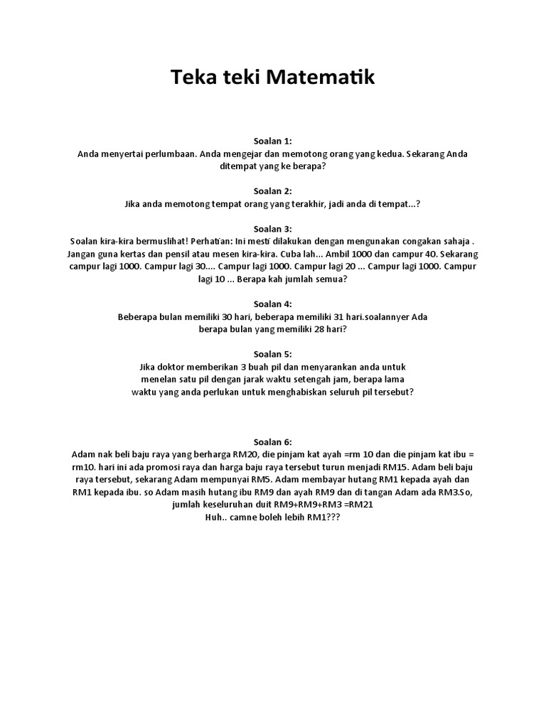 Best main soalan matematik ni dan kenakan member2 yang lain kitaorang main soal. Berikut Ialah Teka Teki Hari Raya. 99 kegagalan datang dari orang yang suka memberi alasan George Washington Carver Ada dua perkara yang anda boleh faham tentang mutiara kata ini.