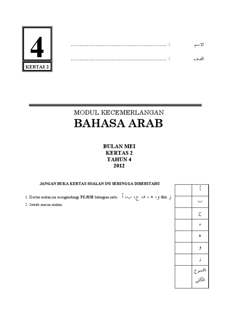 Soalan Ppt Bahasa Arab Kertas 2 Tahun 4 2012 Pdf