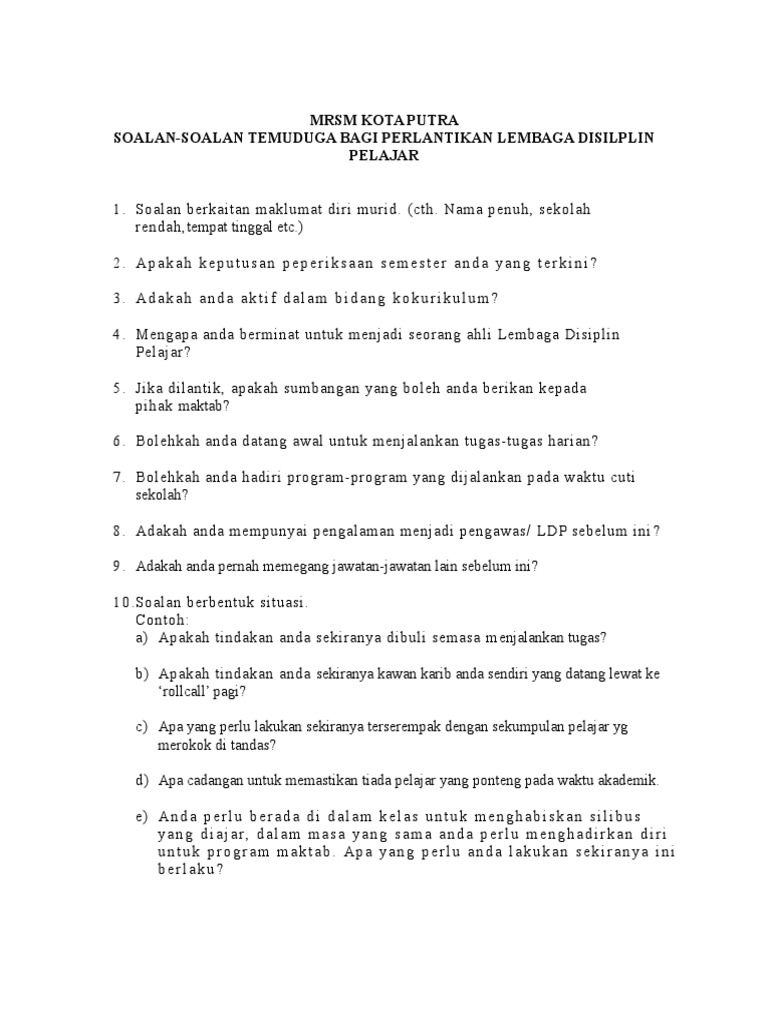 Soalan Peperiksaan Pertengahan Tahun Tingkatan 4 Fizik Kertas 2. Contoh Soalan Interview Yang Biasa Ditanya Berserta Jawapan Kalau kau akan pergi mana-mana interview dalam masa terdekat baca dan hadamkan artikel ini. Contoh soalan interview biasiswa contoh soalan interview usahawan contoh soalan interview uitm contoh soalan interview spp contoh soalan spm contoh soalan upkk contoh soalan matematik tingkatan 1 contoh soalan peperiksaan perkhidmatan awam contoh soalan upsr contoh soalan daya menyelesaikan masalah contoh soalan kaji selidik contoh soalan pksk.