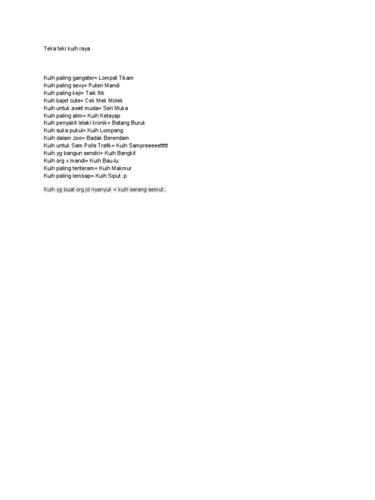Contoh teka teki kuih apa yang bukan kuih yang penting untuk para di ambil dari laman web berikut.